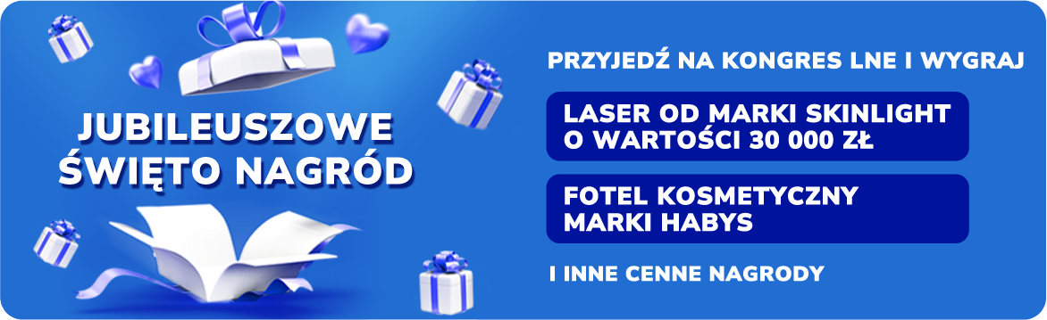 - Zrób zdjęcie na stoiskach obu Fundatorów nagród głównych, udostępnij na Instagramie lub Facebooku, dodaj #50kongreslne oraz oznacz @lne_polska, @skinlight_esthetical i @habys.pl.