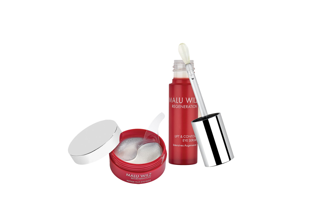 Duet dla delikatnej skóry wokół oczu: zaawansowane serum oraz liftingujące płatki hydrożelowe z peptydami. Serum z ceramiczną, chłodzącą końcówką redukuje opuchliznę i zasinienia, wygładza zmarszczki dzięki peptydom (Palmitoyl Tripeptide-1, Palmitoyl Tetrapeptide-7, SH-oligo/Polypeptides), koenzymowi Q10 i ekstraktom roślinnym (Astragalus, Acmellaoleracea, Safflower). Płatki nasączone kompleksem peptydowym (Argireline / LisinePeptide, SYN-AKE, Trehalose, Tremella, Acetyl Dipeptide - 1 CetylEste) natychmiast poprawiają napięcie skóry i wygładzają ją.